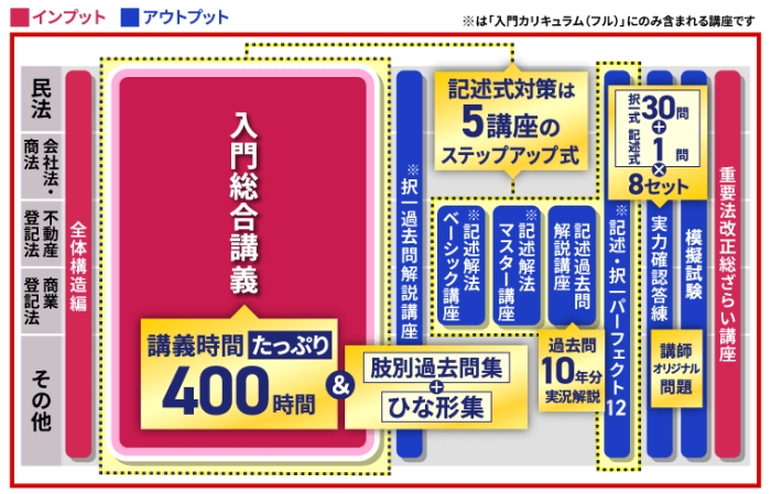 アガルートの司法書士試験講座は、効率的に短期間で司法書士試験に合格することを目指したカリキュラムが用意されています。