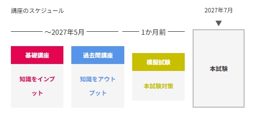 市販のテキストやYouTube動画、eラーニングのみの教材で学習している方は、学習効果が低くなっている可能性があります。